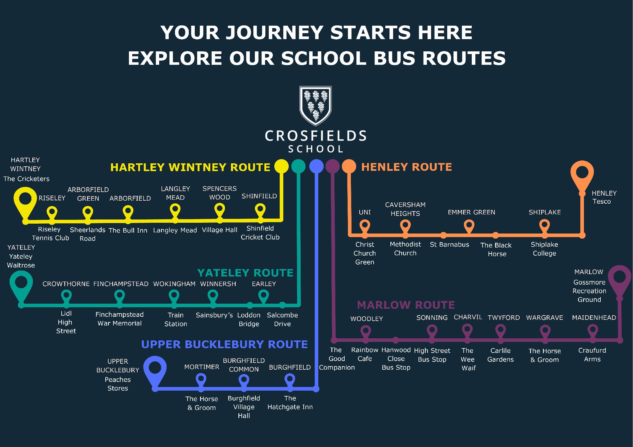 For route-specific inquiries, please contact the School Office at office@crosfields.com.