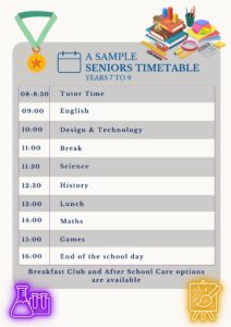 The academic or sporting curriculum restarts at 14:00 (14:30 for Years 10 and 11) and two additional one-hour lessons are enjoyed. Pupils in Years 7 through 9 are then free to go home at 16:00, while older pupils conclude at 16:30.