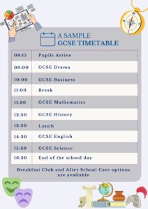 Academic classes resume at 11:30 and continue until a staggered lunch begins in The Hatch at 13:00, with pupils in Year 10 and 11 remaining in their lessons until 13:30.